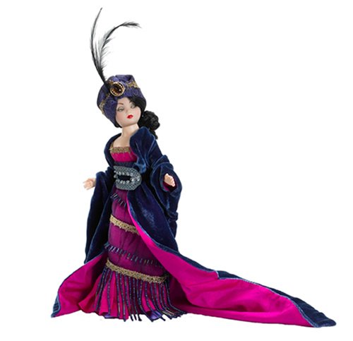 - 10" Midnight Exotique doll is gorgeous in her flowing midnight blue velvet robe with jeweled clasp, as well as her magenta colored gown, accented with gold braid and beading